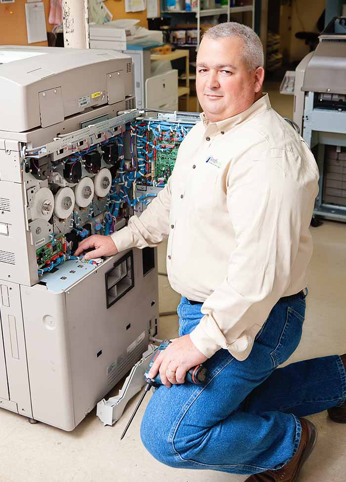They also keep all high-use parts in their car stock. On the rare occasion that they don't have the needed part with them, they will have the part delivered right way to minimize workday print congestion. And we compensate our technicians to keep your equipment running and minimize downtime and callbacks. It's why we use genuine parts from the original equipment manufacturer.